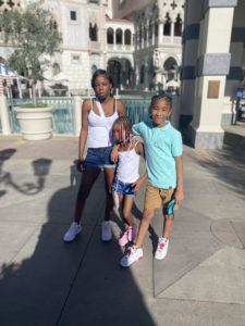This young family includes a mother and her two children, ages 11 and 7.
