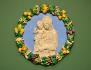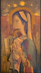 Br. Houde’s wealth of history came in handy, when, beginning in 2012, he took on the responsibility of designing the annual Christmas card. Each summer, he began scouring the collection — including paintings, sculpture and ceramics — in search of one image that would capture the holiness of the season.