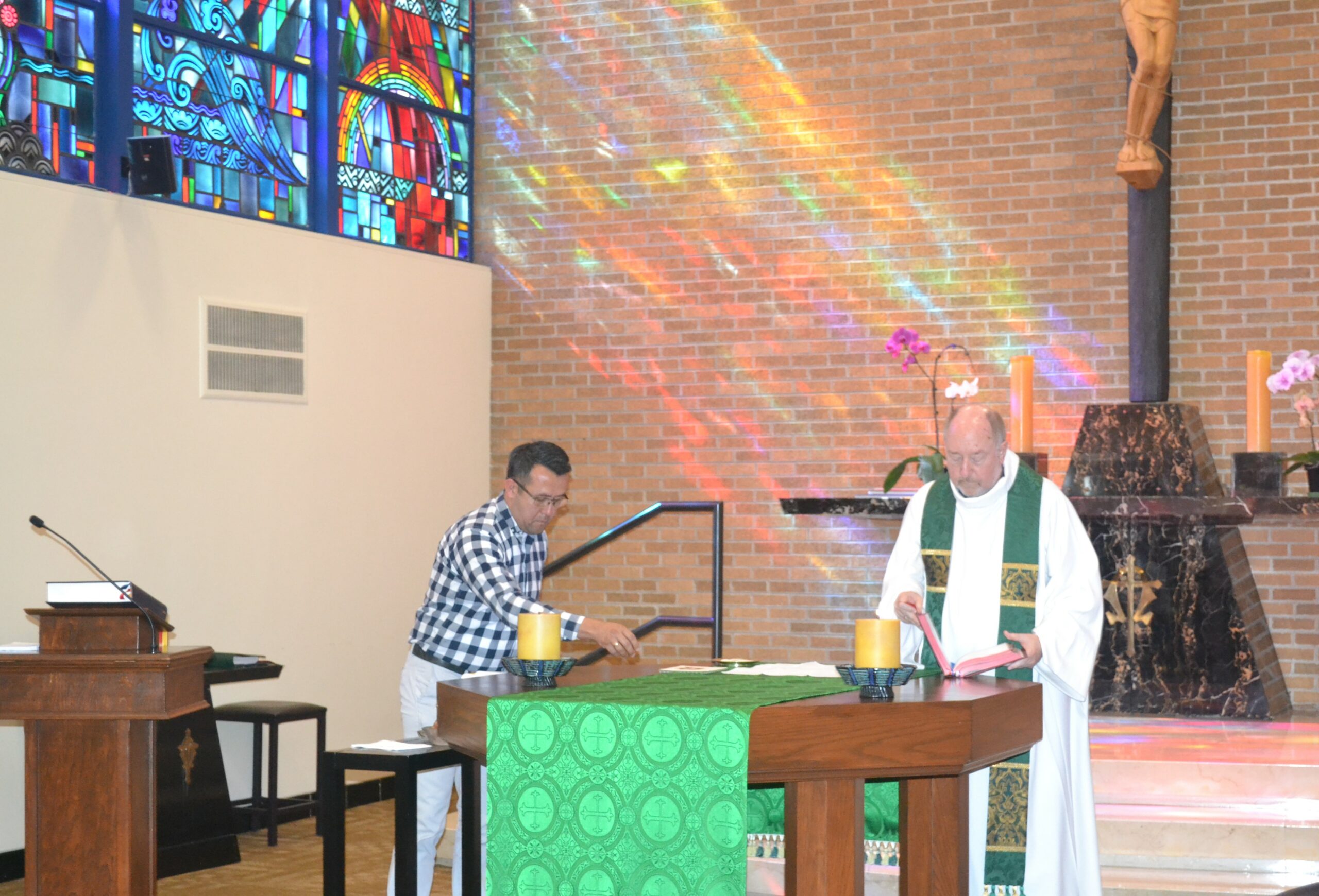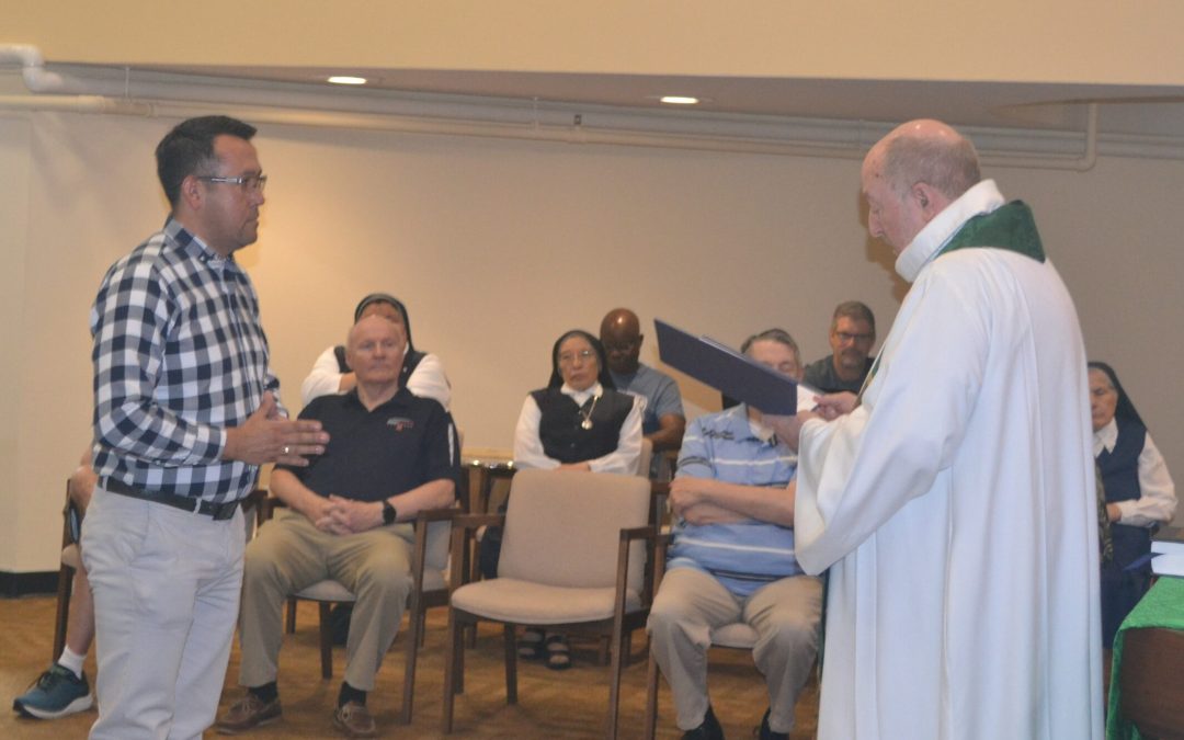 Fr. Mark Francis, CSV, Provincial, described Thursday’s morning Mass as a special celebration. That’s because Br. Jhobany Orduz, CSV, received the two instituted ministries of lector and acolyte during the liturgy. In the intimate setting of the Province Center chapel, with the sun streaming in and surrounded by his Viatorian confreres, Br. Jhobany added new ministries to his religious vocation.