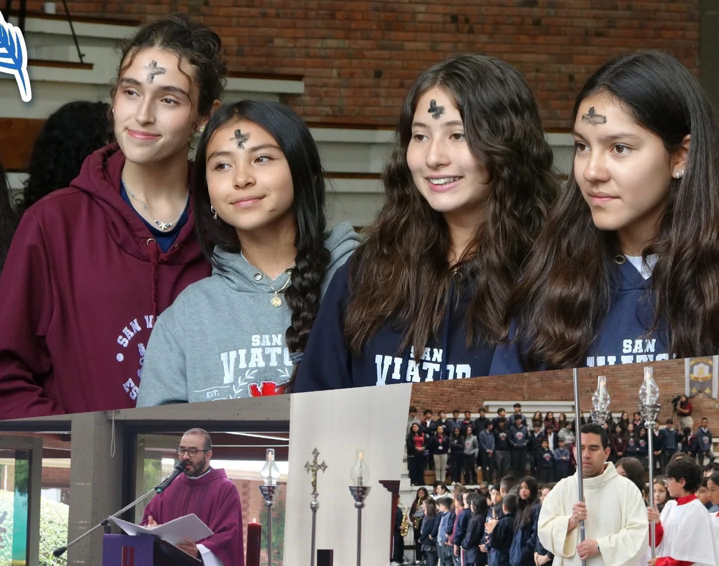 At Colegio San Viator (Saint Viator School) in Bogotá, Chaplain Fr. Edgar Suárez, CSV, celebrated Ash Wednesday services with Rector Fr. Alejandro Adame, CSV, and Deacon Br. John Alexander Avellaneda, CSV, with Br. P. Enrique Medina, CSV, serving. The school celebrated Mass for older students and then followed with a special adapted service for younger students.