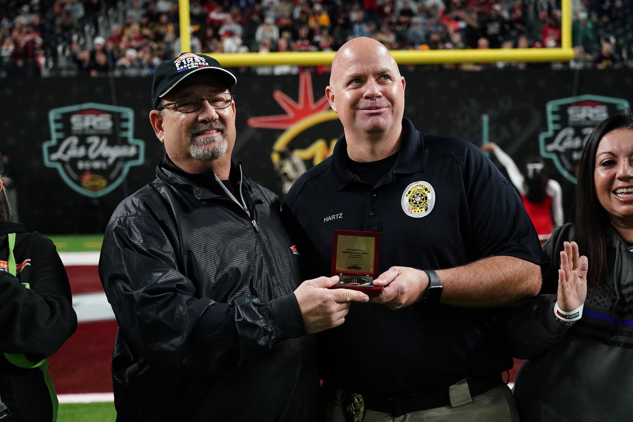 Paul receives special recognition on the field as a Las Vegas college football bowl game in 2021.