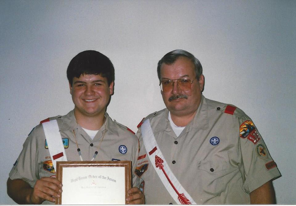 Fr. Jason (left) with his father after earning the Vigil Honor of the Order of the Arrow for exemplary living of the Scout Oath and Law.