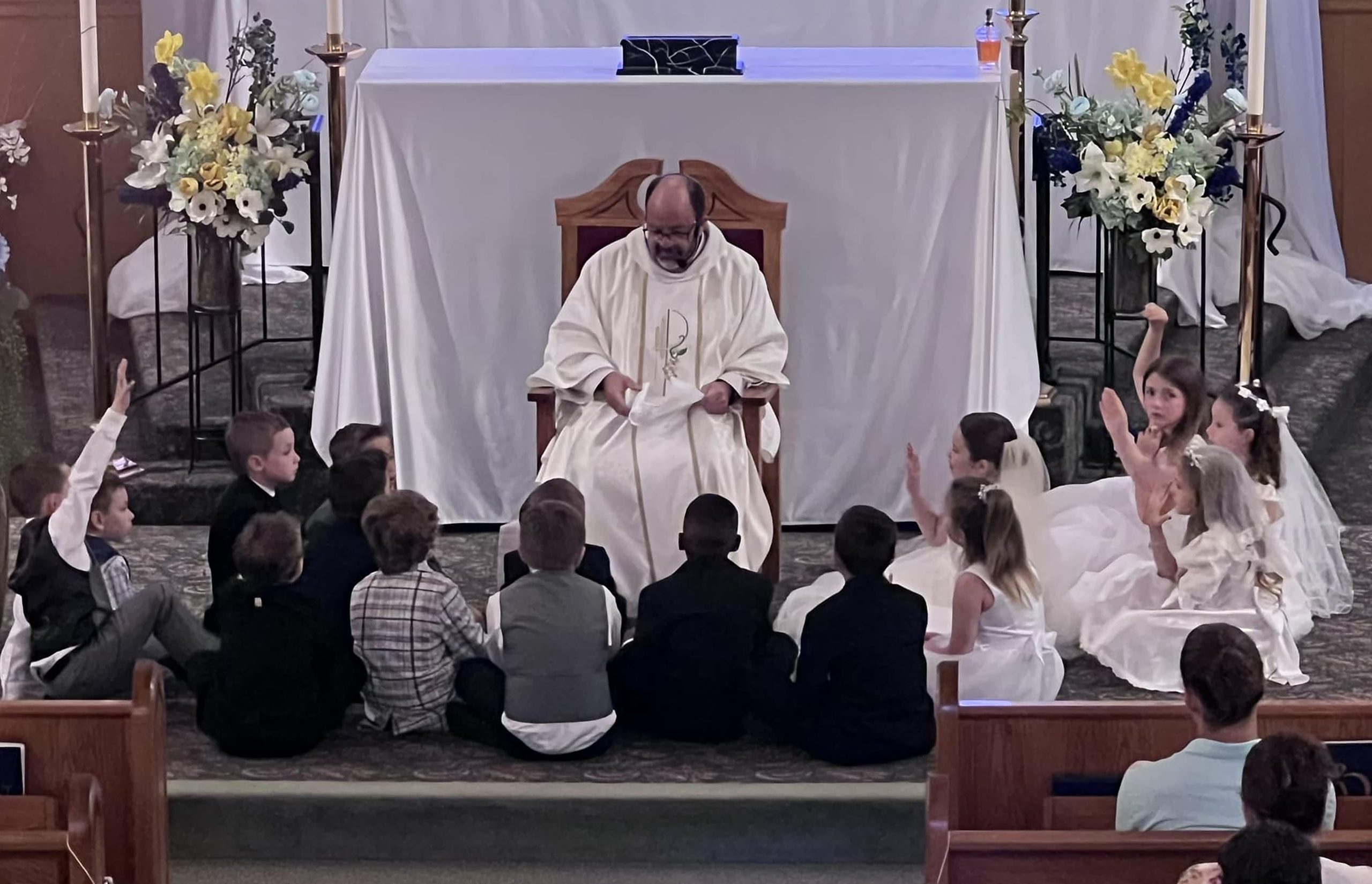 - Celebrating First Communions at Viatorian Parishes (2024): As 2nd graders received Eucharist for the first time, Fr. Dan took time to gather them around the altar for a special teaching moment.