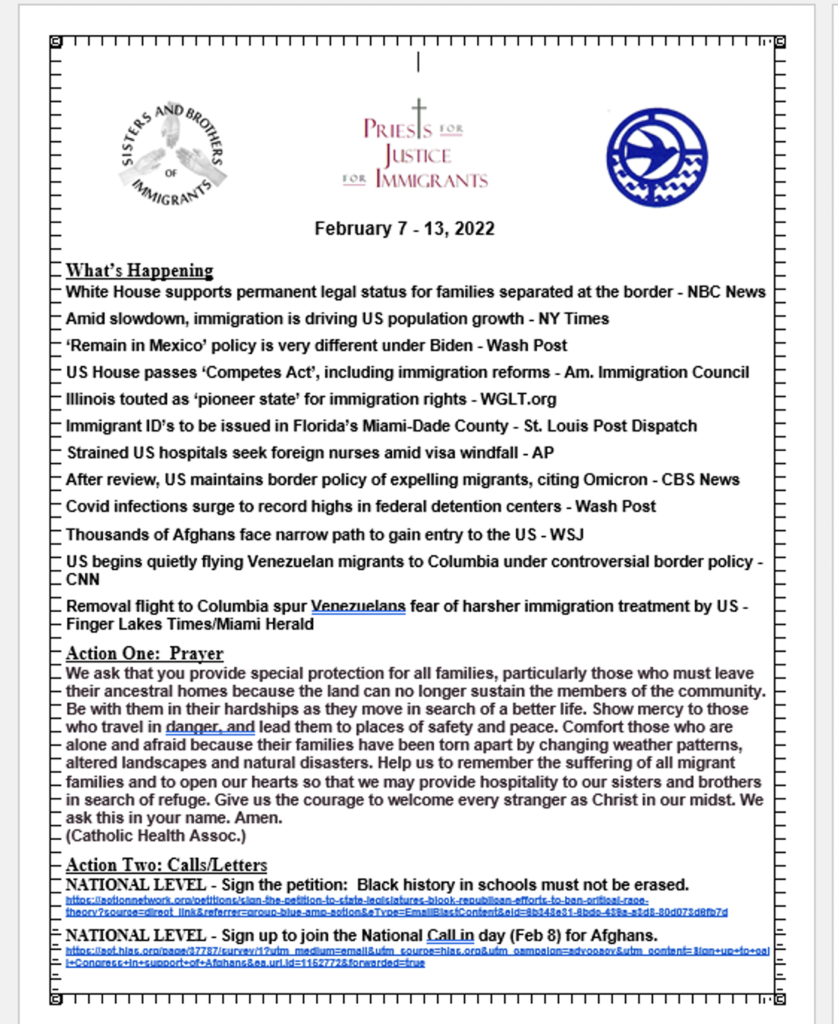 Immigration Action Alert from Sisters and Brothers of Immigrants by edaday | Feb 10, 2022 | Peace & Justice