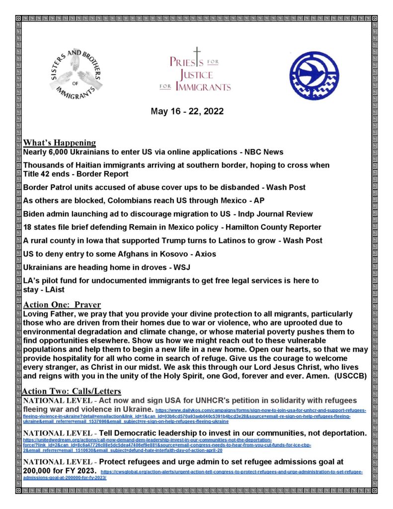 Immigration Action Alerts from Sisters and Brothers of Immigrants by edaday | May 16, 2022 | Peace & Justice