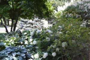 Mature beds of perennials and annuals animate the grounds as well as many varieties of maple, fir and birch trees. Of special note are the giant willow tree, a copper beech and a flowering Japanese larch located near the main entrance.