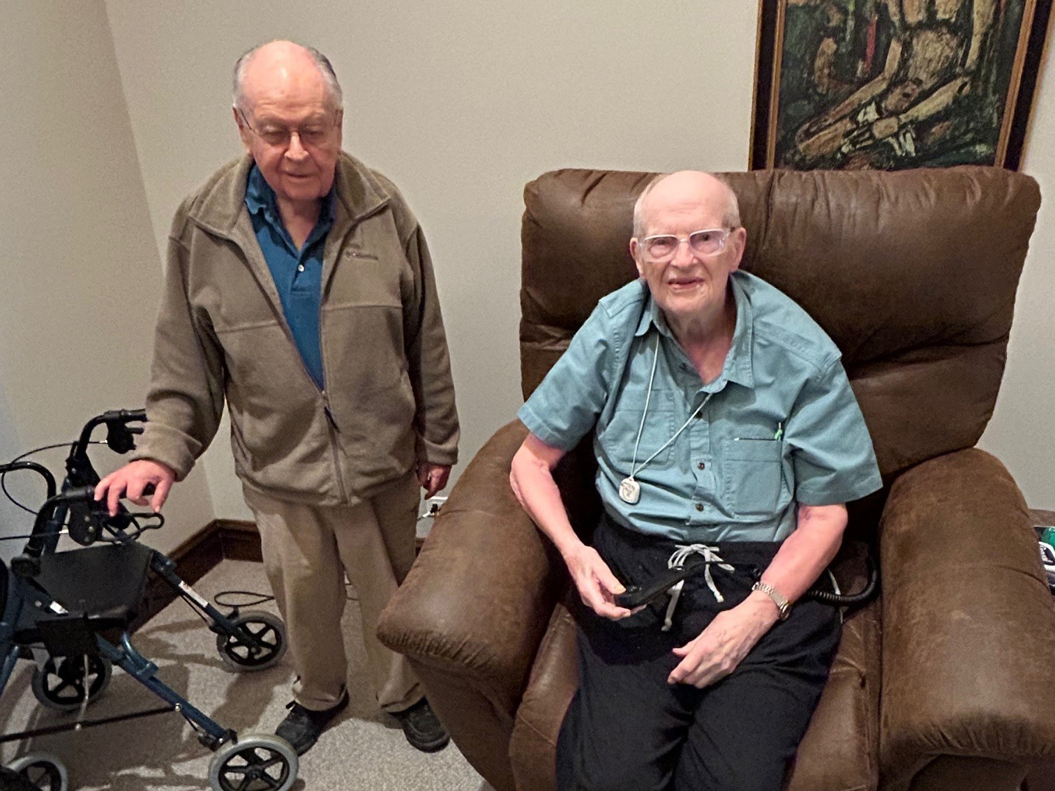 As professed Viatorians study and serve all around the province, they may only connect periodically in various ways over the years. For the late Fr. Don, it was crossing paths again with Fr. Don Wehnert, CSV. They roomed together during formation and undergraduate studies in the late 1940s and early 1950s and professed first vows on the same day in 1951 – yet they never served in the same place. When Fr. Don moved into the retirement wing from Kankakee, IL, in 2024, they were reunited as housemates over 70 years after professing vows together. Bittersweetly, Fr. Don Wehnert is now the senior professed member of the community, as his brother who began religious life on that same day has now passed on.