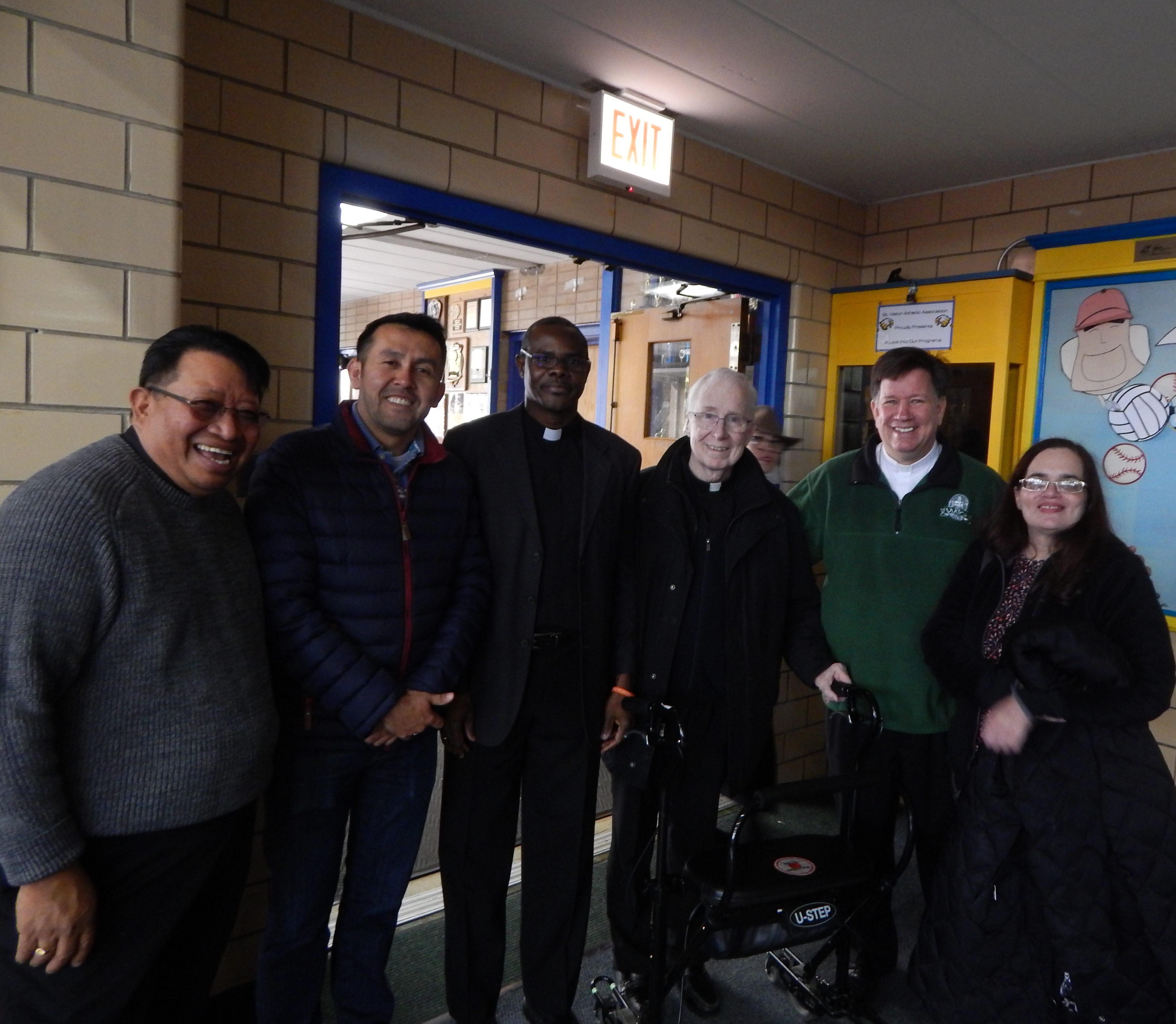 (L-R) Fr. Moses Mesh, Br. Jhobany Orduz, Fr. Robert Jean, Fr. Robert Bolser, Bishop Christopher Glancy and Associate Ivy Vera