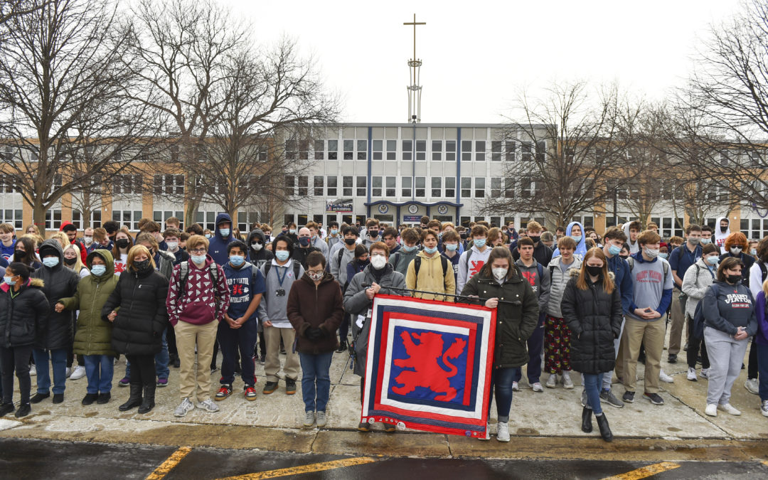 Students, faculty and staff poured out of Saint Viator High School last week to watch a solemn procession slowly drive by.