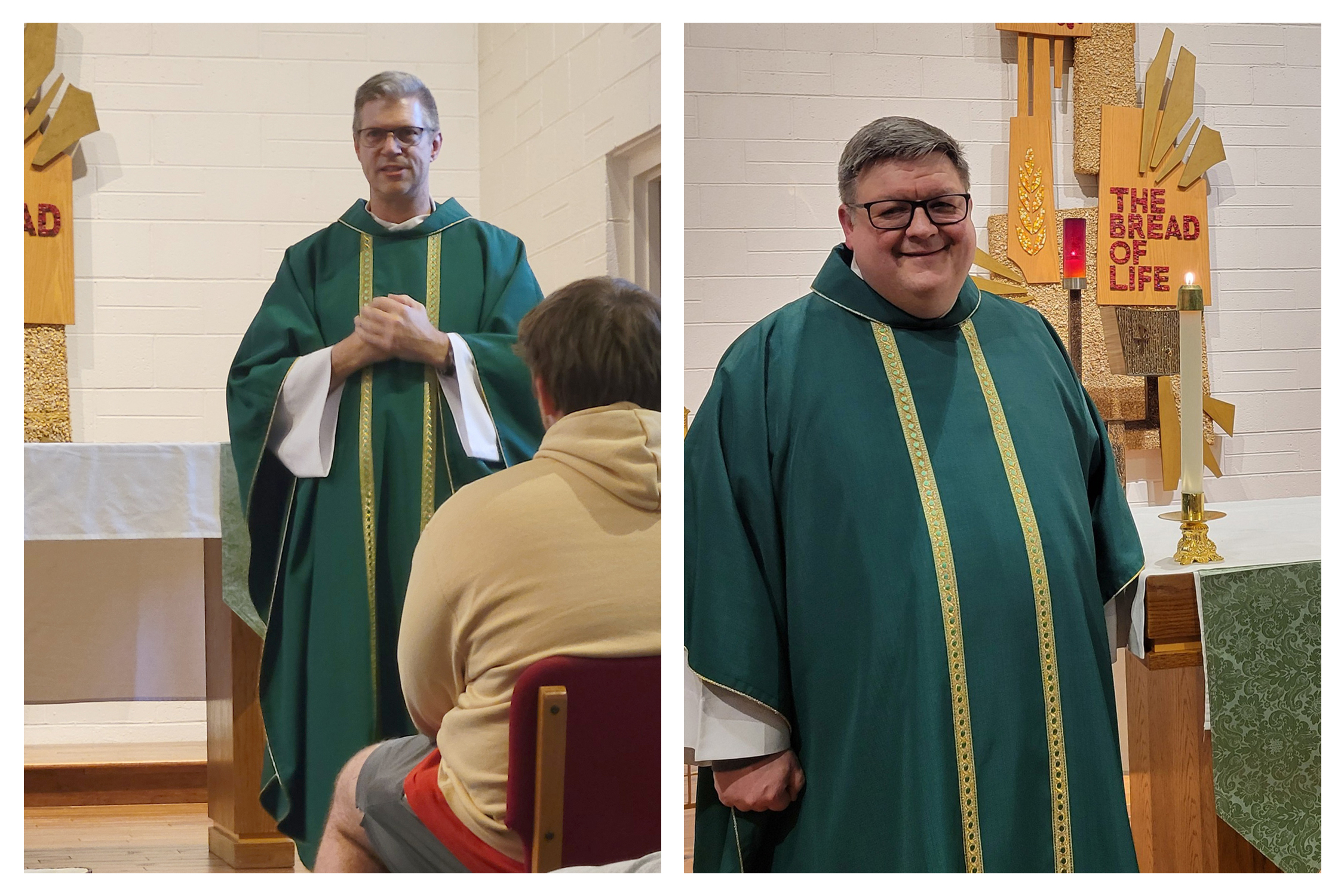 SVHS Chaplain Fr. John (left) directed the retreat and celebrated the Sacraments, and he had some help from MBVM Pastor Fr. Jason (right), who came up for a day to assist with the Sacraments and visit with everyone on retreat.