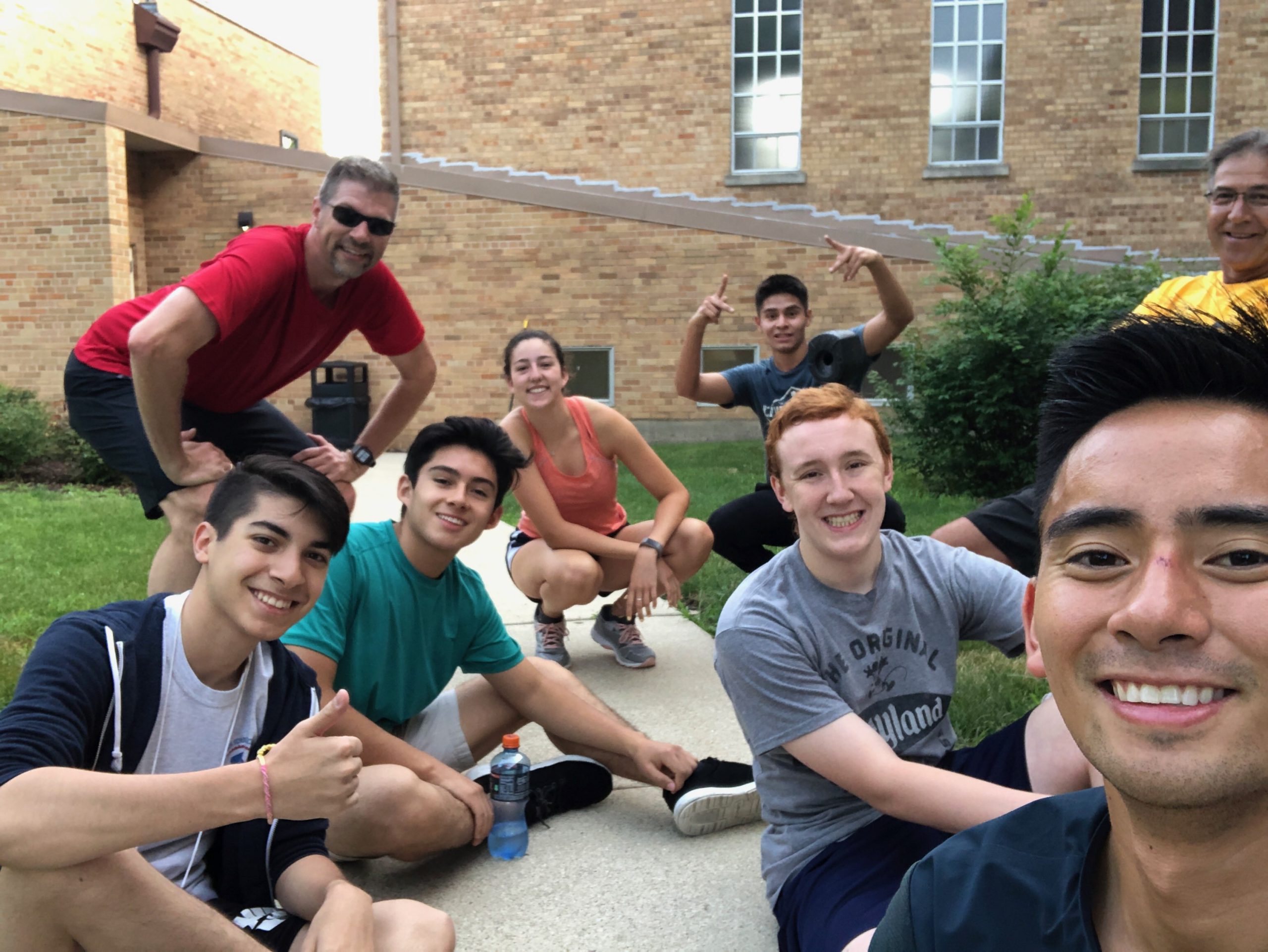 German (seated, green shirt) clicked with then-Br. John at VYC 2019 over some morning runs, which got him into running as a hobby and favorite way to exercise.