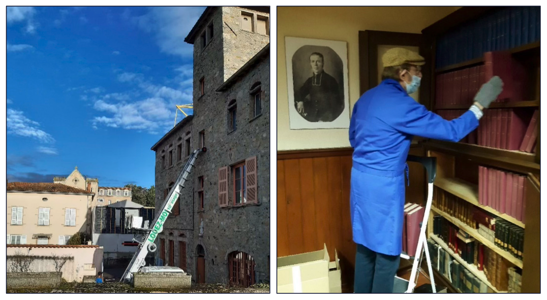The Viatorian headquarters in Vourles, France, is getting an update. Workers emptied out several interior spaces, and Archivist Fr. Andre Crozier, CSV, of France carefully removed each of the over 3,000 books for safe storage. The project will remove some interior walls to use the space more efficiently for offices, meeting areas, and bedrooms, while maintaining the historical character of the building. Work will continue through the summer and should conclude in late 2026.