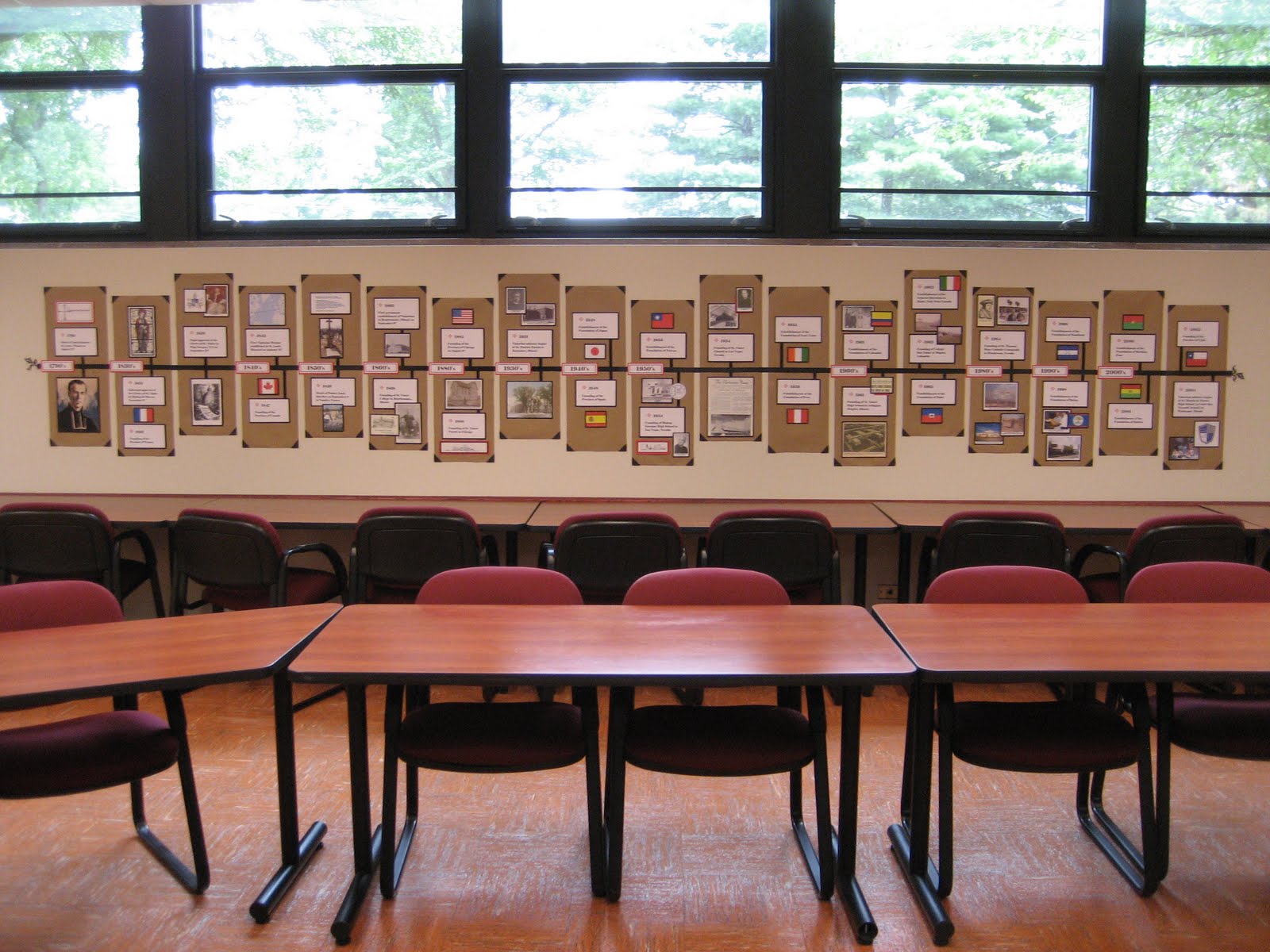 To help the students learn about the history of the Viatorians and their respective parishes and/or schools, a timeline was created and displayed on the wall in the Province Center meeting room. It starts with the birth of Louis Querbes, our founder and continues through to the current decade.