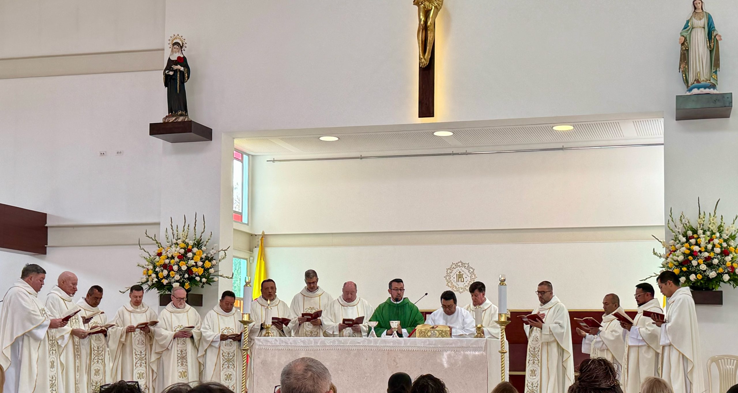 Fr. Jhobany Orduz, CSV celebrates his first Mass with several Viatorian priests concelebrating.